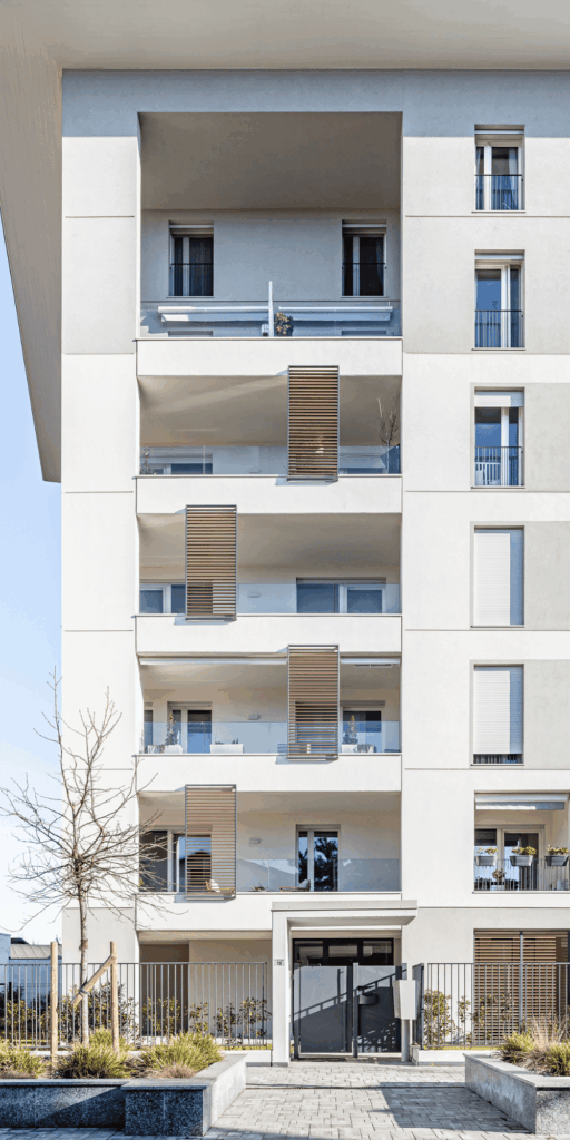 Particolare attenzione è stata dedicata al rapporto tra volumi, proporzioni e ritmo delle facciate, così come alla gestione degli spazi comuni e delle aree di connessione, pensate per favorire vivibilità e qualità dell’abitare.